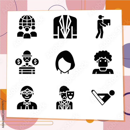 Simple set of 9 icons related to hu being
