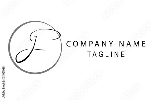 Simple Vector Hand Draw Sketch Black and Gray Logo Script F, For Classic Elegance Corporate, at White Background