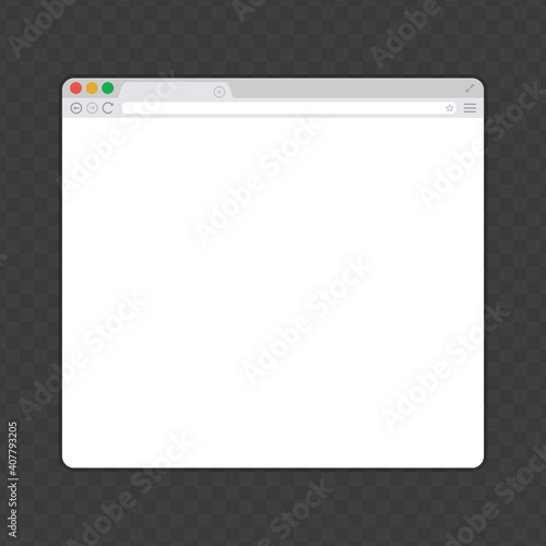 Simple web browser window. Web page mock up in trendy flat style. Template of empty, clean internet browser windows isolated transparent background.