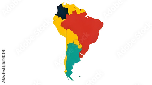 Simplified, colorful map of South America showing country borders and distinct regions.
