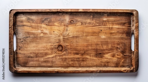Single bare wooden tray on white backdrop with space for text.