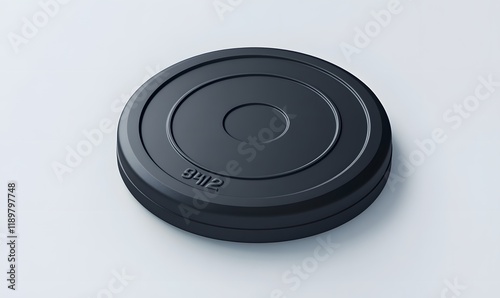 Single black weight plate isolated on white.