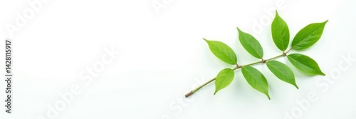 Single branch with leaves against the bright white surface, nature, green, nature isolate
