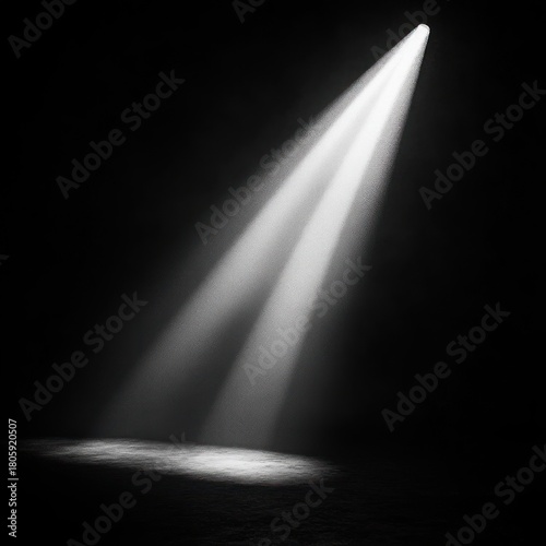 single dramatic spotlight casting twin beams onto an empty dark stage, evoking solitude and suspense