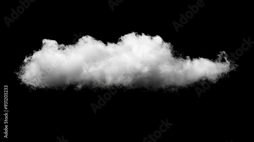 Single fluffy white cloud isolated on black background.