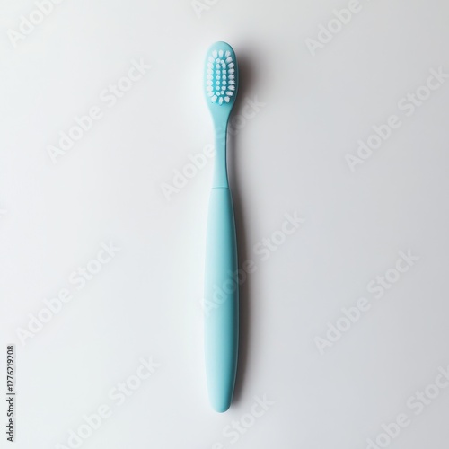 Single light blue toothbrush on white background.