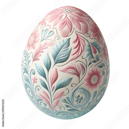 Single Pastel-Colored Easter Egg With Intricate Floral Designs: Isolated On A White Background