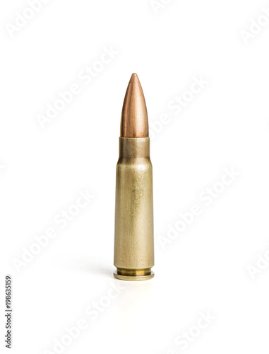 Single rifle bullet on white background, including clipping path
