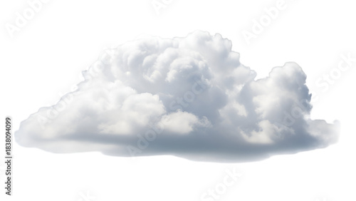 Single rounded puffy cloud, hyper-realistic details, soft edges, isolated on white background, minimal atmospheric PNG for compositing.