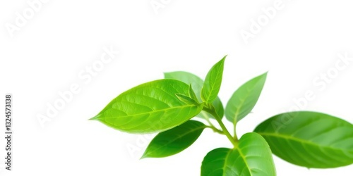 Single vibrant green plant, isolated on pure white backdrop, bright, vibrant