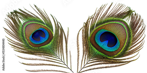 Single Vibrant Peacock Feather with Eye Pattern isolated on white background PNG