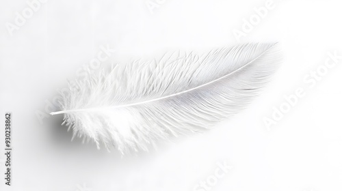 Single white feather, delicate texture, soft and fluffy, pure white background, copy space for text, minimalist composition, high resolution, macro photography.