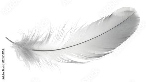 Single white feather floating on transparent background