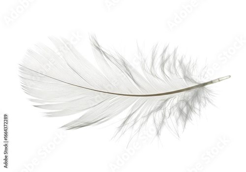 Single White Feather on White Background: Delicate, Light, Airy Texture isolated on transparent background