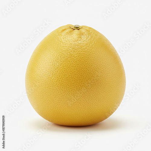 single, whole, yellow grapefruit with its natural stem scar visible at the top