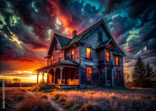 Sinister Shadows in an Abandoned House Evoke Fear and Mystery in a Dark Horror Atmosphere