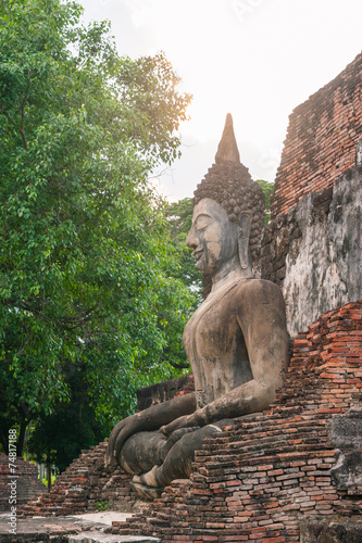 sitting Buddha sculpture in Sukhothai historical park, Thailand