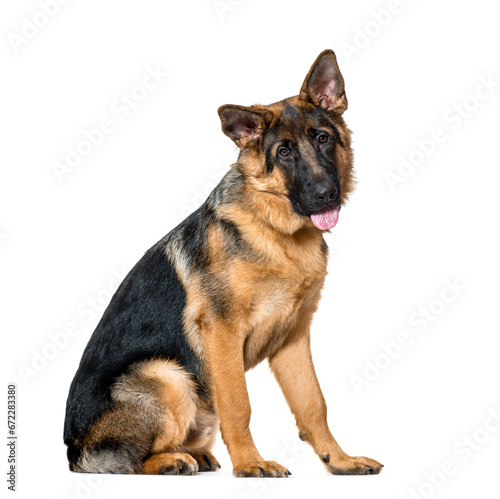 sitting German Shepherd Dog panting, cut out