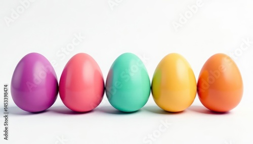 Six flat geometric Easter eggs, vibrant colors, white background, circles, art, simple