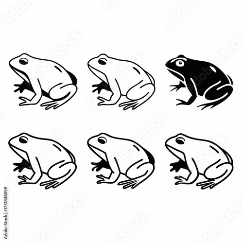 Six frog illustrations in a pattern a playful and simple design element