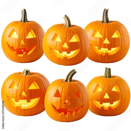 Six jack-o'-lanterns, Halloween theme