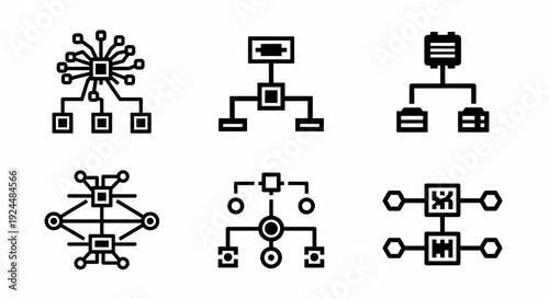 Six Network and Data Structure Architecture Icons Set Black Glyph Vector Illustration