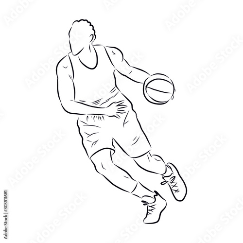 sketch of a man with ball, basketball player sketch