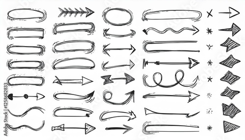 Sketch underline, emphasis, arrow shape set. Hand drawn brush stroke, highlight, speech bubble, underline, sparkle element. perfect any project.