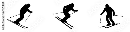 Skiing silhouette of person on white background