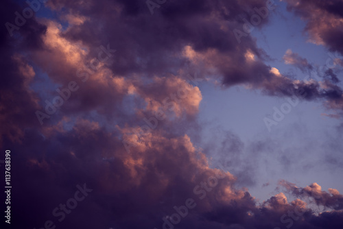 Sky with colorful and vivid sunset clouds. Natural background.