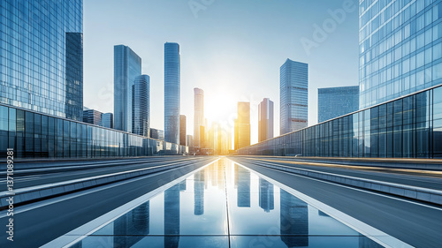 Skyscraper and busy highway in modern city, showcasing the blend of modernization and transportation