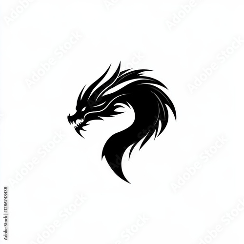 Sleek Black Dragon Head Silhouette with Sharp Features and Curving Neck against a Clean White Backdrop for Modern Design