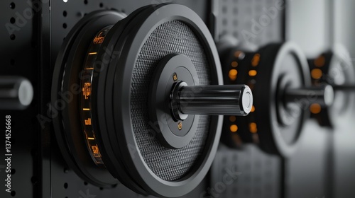 Sleek black dumbbells displayed on a rack in a modern gym setting
