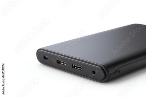 Sleek black external hard drive with multiple ports. Perfect for data backup and storage.