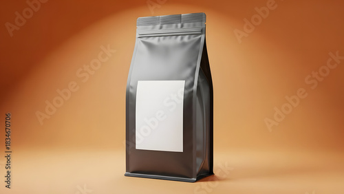 Sleek black package with blank label ready for brand placement, ideal for coffee, snacks, or product design mockups in modern marketing campaigns
