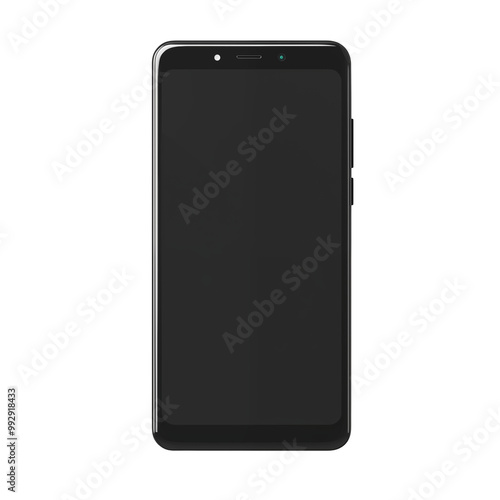 Sleek Black Smartphone With Dark Screen Isolated On White Background