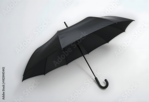 Sleek Black Umbrella with Curved Handle on White Surface