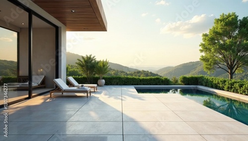 Sleek ceramic tiles, pitched roofline, sunny day, brown, architecture