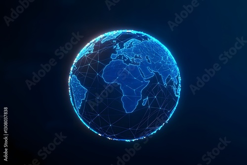 Sleek Geometric Digital World Globe in Navy and Cyan Synthwave Inspired Generative Style