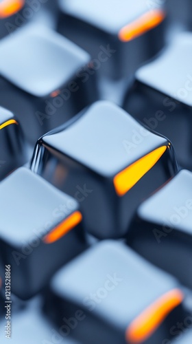 Sleek metallic cubes subtly glow with warm light reflecting sharp angles. AI Generated