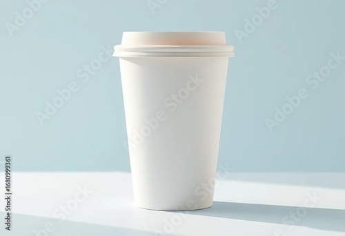 Sleek, minimalist paper coffee cup with subtle geometric pattern, lines, form