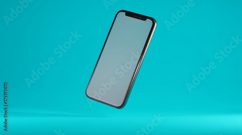 Sleek modern smartphone with pristine blank screen on vivid blue background for digital content.