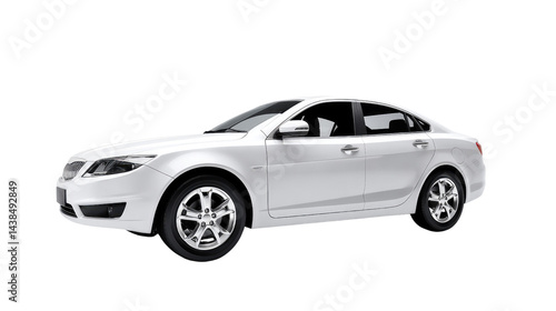Sleek White Sedan: A pristine, modern white sedan, embodying sophistication and innovation, stands ready to embark on a journey. Capturing the essence of transport and automotive design.