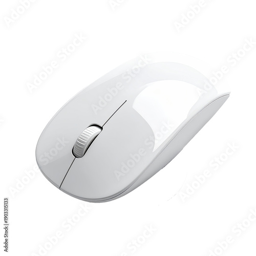 Sleek White Wireless Computer Mouse on a Clean White Background.