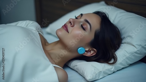 Sleep Earbuds. Relaxed young woman with blue earrings sleeping peacefu