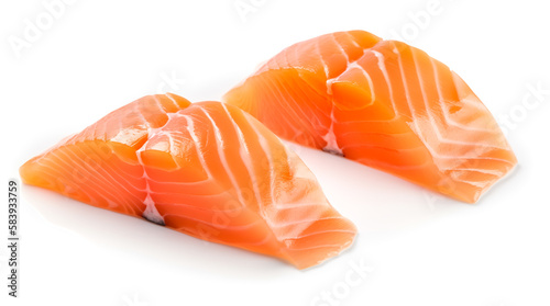 slice of fresh raw salmon on white background. Generative AI