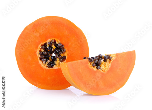 slice ripe papaya on white background