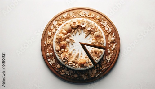 sliced cake in the middle of the black background, flat lay top view