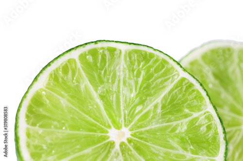 Sliced fresh lime fruit isolated on white background.Close-up.