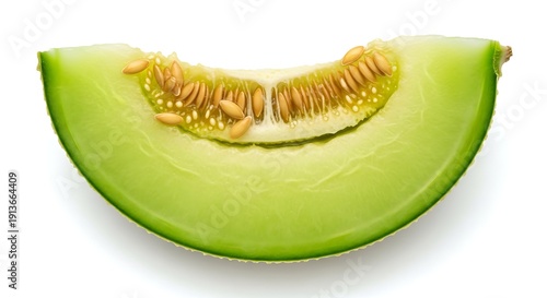 Sliced honeydew melon half with seeds